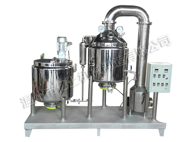 9、根據(jù)經(jīng)驗(yàn),大約40分鐘左右,濃縮完畢,停止加熱,關(guān)閉真空泵抽氣閥,打開濃縮罐排空閥,真空度降到常態(tài)后,開啟出料閥放料,同時(shí)應(yīng)將回收罐中的水放凈,以備下次工作。